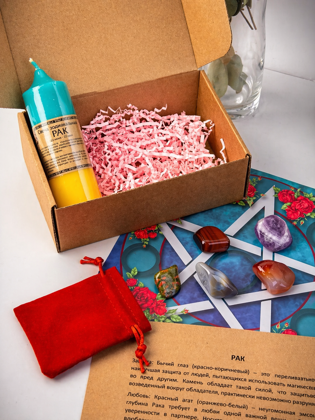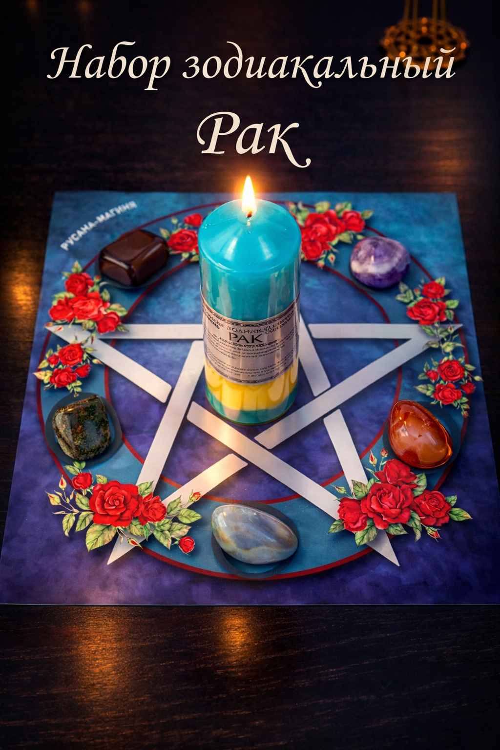 Старые легенды гласят, что камни по знакам зодиака распределил сам Бог. Все они имеют магические свойства- успокаивают, лечат, защищают или притягивают любовь. Если вы хотите чтобы чтобы талисман отдавал вам свою силу, нужно знать какие минералы вам подходят. Я подобрала камни с разными свойствами для каждого знака зодиака. Для того чтобы максимально раскрыть потенциал каждого камня, его необходимо активировать с помощью огня магической зодиакальной свечи, на специальном алтаре. В зодиакальный набор для Рака входят: свеча и алтарь с описанием ритуала, 5 полудрагоценных камней (бычий глаз, красный агат, аметист, унакит, серый агат) с их характеристиками и бархатным мешочком для хранения, магические духи "Подарки судьбы" (в составе масло жожоба, мандарин, роза, розовое дерево, грейпфрут, жасмин) и порошок "Кровь дракона" с инструкцией- для усиления ритуала. В камнях допускается присутствие естественных природных неровностей, трещинок и включений. Минералы натуральные и могут отличаться незначительно размером и формой от представленных на фото. Размер камней 2,5 - 3 см. Каждый набор я дополнительно сонастраиваю с его владельцем, для этого мне необходимо знать Ваше ФИО и дату рождения, для заказа пишите мне в личные сообщения в МАХ или Телеграмм 8(926)297-25-05.