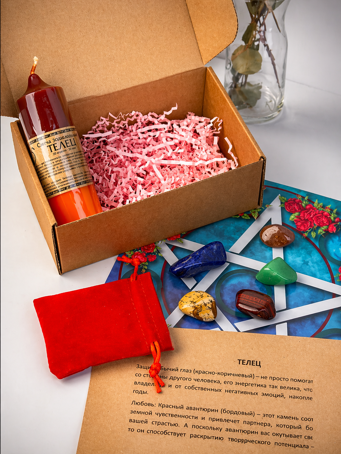 Старые легенды гласят, что камни по знакам зодиака распределил сам Бог. Все они имеют магические свойства- успокаивают, лечат, защищают или притягивают любовь. Если вы хотите чтобы чтобы талисман отдавал вам свою силу, нужно знать какие минералы вам подходят. Я подобрала камни с разными свойствами для каждого знака зодиака. Для того чтобы максимально раскрыть потенциал каждого камня, его необходимо активировать с помощью огня магической зодиакальной свечи, на специальном алтаре. В зодиакальный набор для Тельца входят: свеча и алтарь с описанием ритуала, 5 полудрагоценных камней (бычий глаз, красный авантюрин, песочная яшма, зеленый кварц, содалит) с их характеристиками и бархатным мешочком для хранения, магические духи "Подарки судьбы"(в составе масло жожоба, мандарин, роза, розовое дерево, грейпфрут, жасмин) и порошок "Кровь дракона" с инструкцией- для усиления ритуала. В камнях допускается присутствие естественных природных неровностей, трещинок и включений. Минералы натуральные и могут отличаться незначительно размером и формой от представленных на фото. Размер камней 2,5 - 3 см. Каждый набор я дополнительно сонастраиваю с его владельцем, для этого мне необходимо знать Ваше ФИО и дату рождения, для заказа пишите мне в личные сообщения в МАХ или Телеграмм 8(926)297-25-05.
