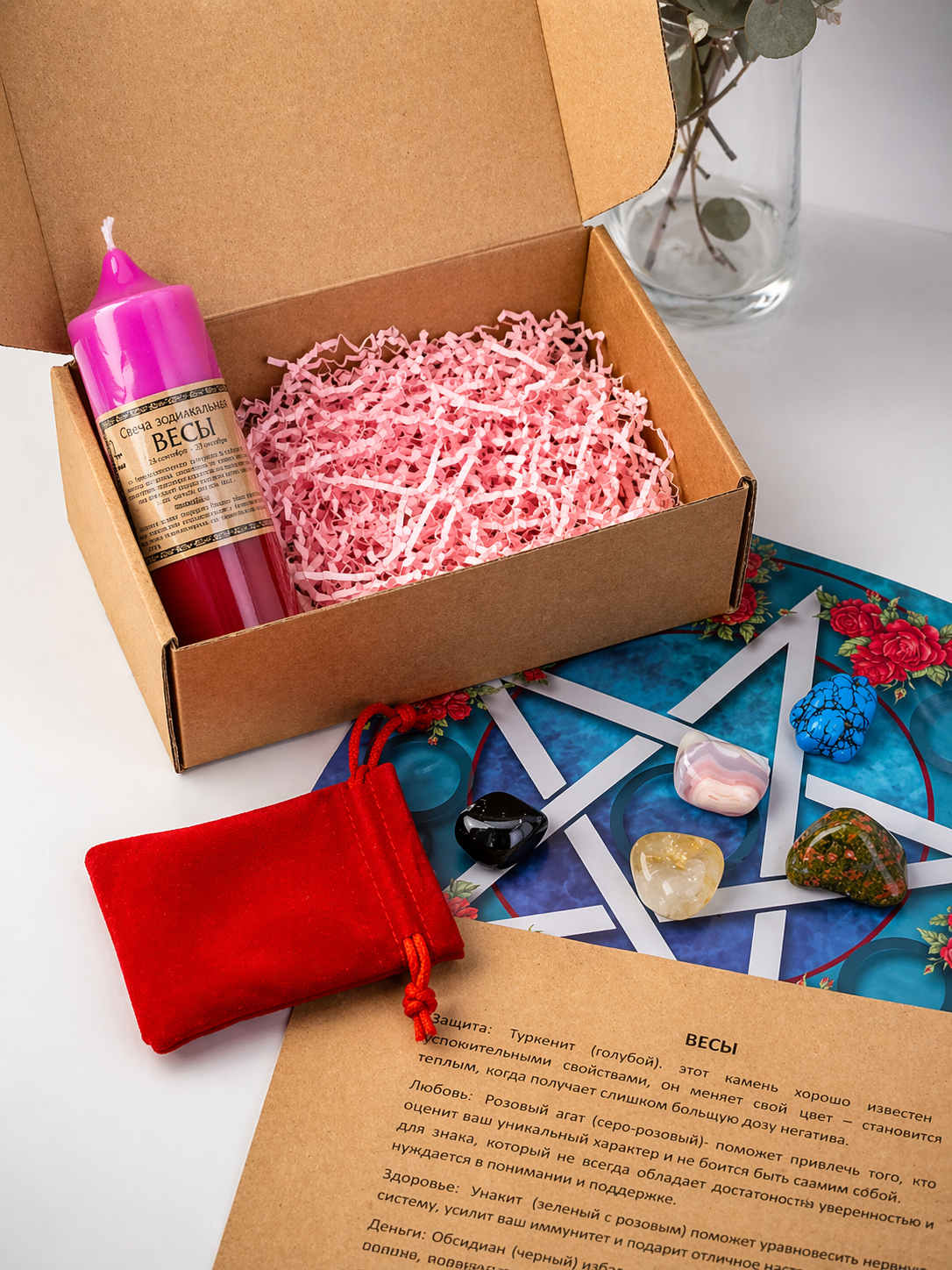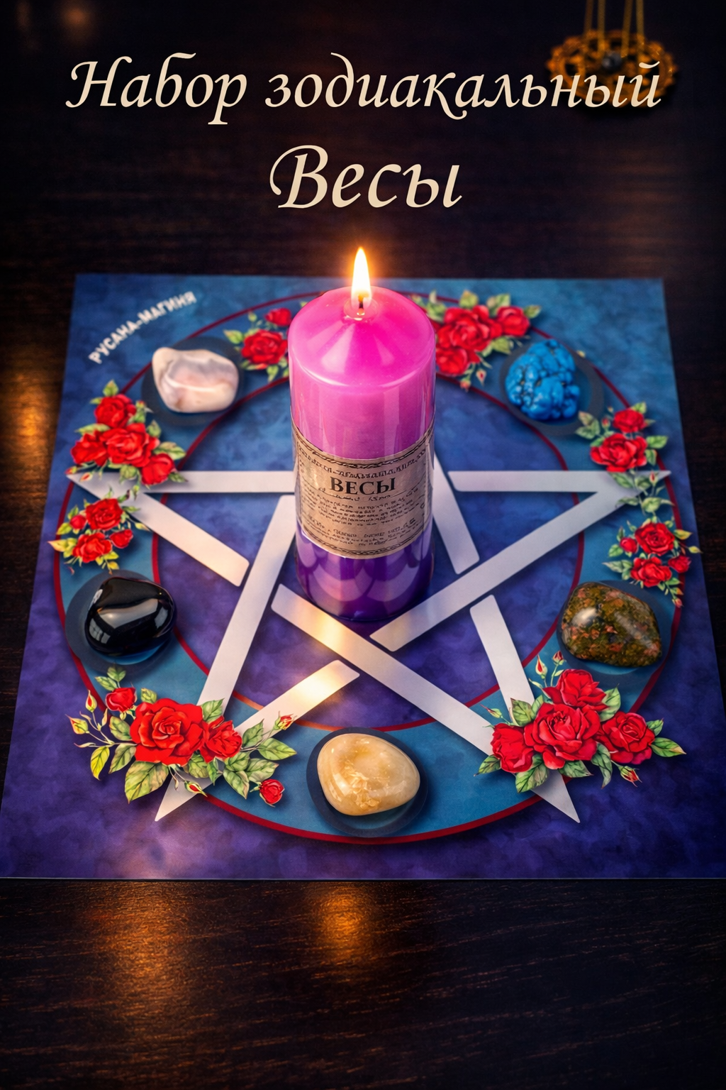 Старые легенды гласят, что камни по знакам зодиака распределил сам Бог. Все они имеют магические свойства- успокаивают, лечат, защищают или притягивают любовь. Если вы хотите чтобы чтобы талисман отдавал вам свою силу, нужно знать какие минералы вам подходят. Я подобрала камни с разными свойствами для каждого знака зодиака. Для того чтобы максимально раскрыть потенциал каждого камня, его необходимо активировать с помощью огня магической зодиакальной свечи, на специальном алтаре. В зодиакальный набор для Весов входят: свеча и алтарь с описанием ритуала, 5 полудрагоценных камней (туркенит, розовый агат, унакит, цитрин, обсидиан) с их характеристиками и бархатным мешочком для хранения, магические духи "Подарки судьбы"(в составе масло жожоба, мандарин, роза, розовое дерево, грейпфрут, жасмин) и порошок "Кровь дракона" с инструкцией- для усиления ритуала. В камнях допускается присутствие естественных природных неровностей, трещинок и включений. Минералы натуральные и могут отличаться незначительно размером и формой от представленных на фото. Размер камней 2,5 - 3 см. Каждый набор я дополнительно сонастраиваю с его владельцем, для этого мне необходимо знать Ваше ФИО и дату рождения, для заказа пишите мне в личные сообщения в МАХ или Телеграмм 8(926)297-25-05.
